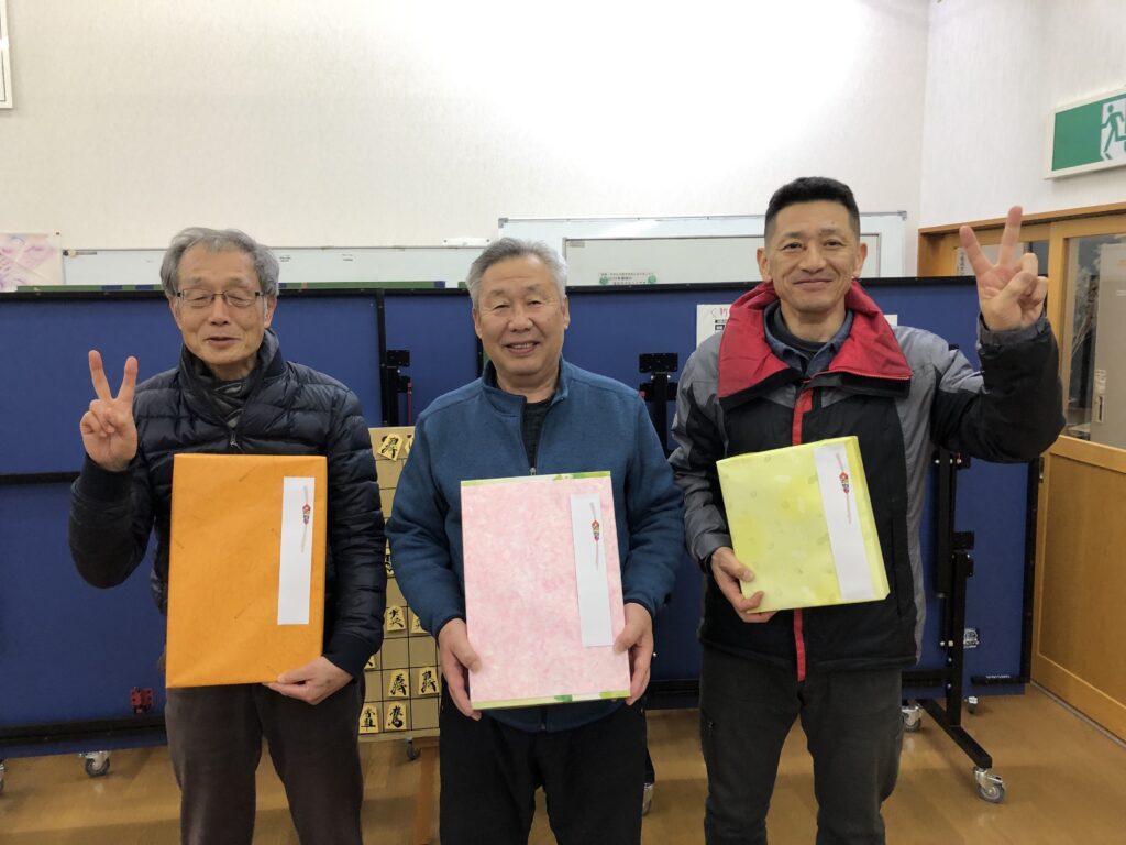左から準優勝の鍛治邦雄さん・優勝の藤田喜市さん・3位の緑川馨さん